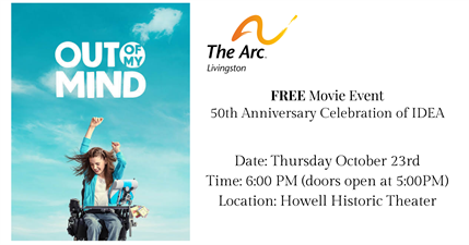 Join us Thursday October 23rd at the Howell Historic Theater as we watch 'Out of My Mind' based on the novel written by Sharon M. Draper. Movie is rated PG.